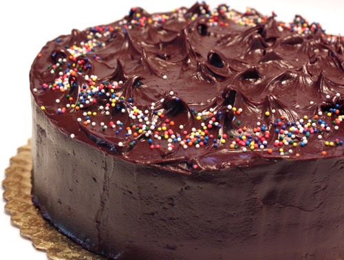 Knowing that the cake was to be delivered and therefore I wouldn’t be able to cut into it myself, I made some extra batter and frosting so I could bake a few cupcakes to keep at home. That was out of a sense of duty, I assure you. I wanted all of you to be able to see the inside of this tender-crumbed and delicious yellow cake. Although, I usually like to experiment with new and different cake flavors, fillings, and frostings, sometimes a reliable, basic cake is exactly what you need. The yellow, vanilla layers could be paired with all sorts of different frostings, but the chocolate ganache would be hard to beat. The frosting was rich and fudgy and not too sweet or heavy. This is a classic that I know I’ll turn to for many more celebrations to come.