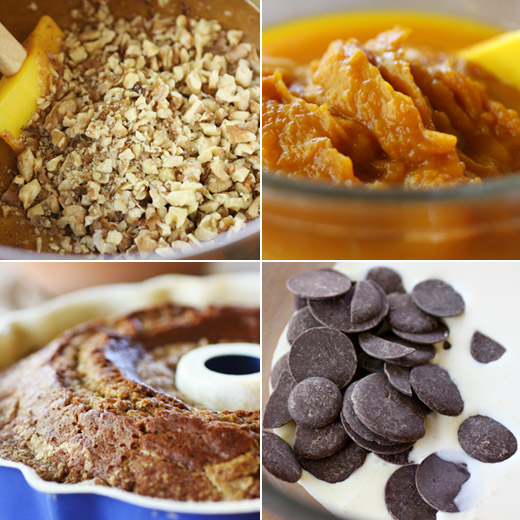 Remember last April when the Austin Bakes group organized a big bake sale benefitting recovery efforts in Japan? Well, we’re getting the band back together again, and this time, all proceeds will benefit the Austin Community Foundation's Central Texas Wildfire Fund. This fund is providing support to agencies working in Bastrop, Steiner Ranch, Spicewood, and other parts of Central Texas affected by wildfire. The bake sale is this Saturday, October 1, from 10 am until 2 pm at six locations in Austin and one location in Round Rock, and there’s also an online giving page. With the day of the bake sale approaching quickly, I needed to test a recipe for a cake that I thought might be worthy of the event. This is a cake from the book Miette, and it caught my eye when I read the book earlier this summer. It’s an easy, bundt cake, and in the book, made-from-scratch pumpkin puree is recommended. I cheated and used organic canned pumpkin puree, and the cake was lovely. With pumpkin and walnuts involved, I expected a deliciously dense crumb, but instead, this was one of the lightest and fluffiest cakes with nuts I’ve tasted. It’s adorned with just enough chocolate ganache to make it special, but just a dusting of confectioners' sugar or even leaving it plain wouldn’t have diminished this cake.
