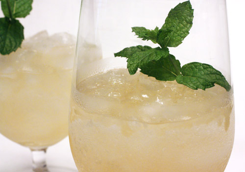 There was an article in the August issue of Food and Wine (Farm-Fresh French Recipes) with several great-looking recipes I intended to try. Among those recipes were chilled zucchini soup with purslane, brown rice pilaf with green olives and lemon, oven-roasted tomatoes stuffed with goat cheese, and basil limeade slushies. Unfortunately, I was having the kind of day during which everything that could go wrong did. I had brought home some heirloom tomatoes that were real beauties, and I had procured some goat cheese, and my own basil plants are still going strong. I made the goat cheese stuffing, placed it in the tomatoes, and roasted them. No problems there. However, when I reached into the oven to remove the baking dish, it slipped out of my hands, and the tomatoes and goat cheese stuffing landed upside down and smooshed all over the oven door and the floor. By some miracle, the dish didn’t break, but brunch was ruined. Later that night, I had much better luck with these slushies before dinner. As for the name, I previously made watermelon margarita ‘slushes’ while these are named ‘slushies.’ Tomayto tomahto. I’ve just gone with the name that was printed with each recipe.